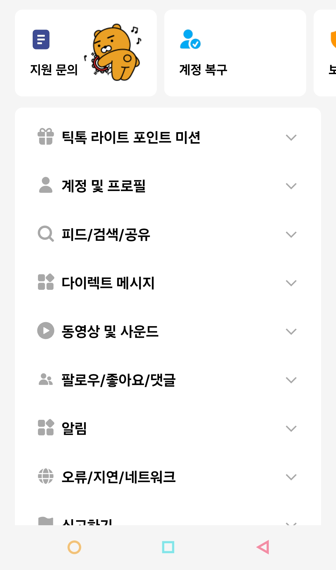 4. ‘문제 신고’ 또는 ‘지원 문의’ 선택